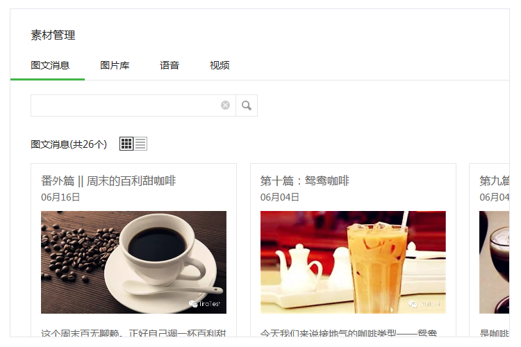 3. 圖文消息素材庫支持卡片和列表兩種展示形式