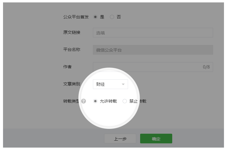 公眾平臺(tái)支持原創(chuàng)文章選擇轉(zhuǎn)載類型