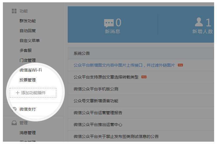 1. 運(yùn)營者在功能欄目下,點(diǎn)擊添加功能插件。