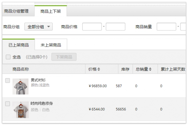 2. 商品上下架:可以快速對商品進行上下架操作。