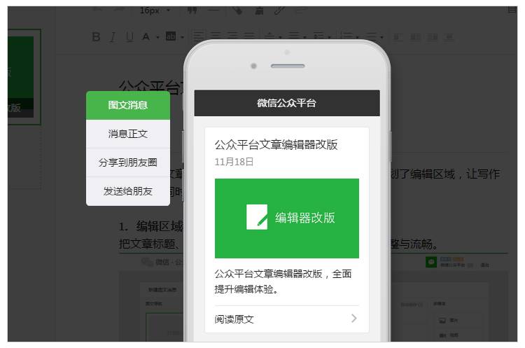 1、文章編輯器新增更為便捷的預覽功能,優(yōu)化長文章編輯器體驗,并提升IE兼容性;
