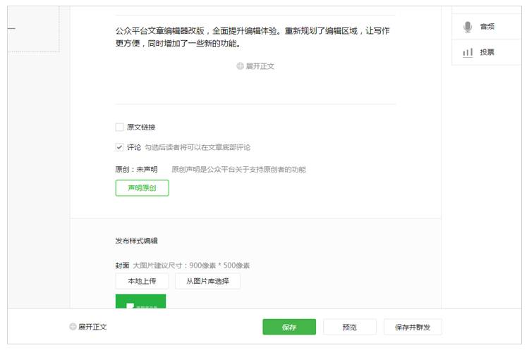 2、優(yōu)化長文章編輯體驗。新增收起/展開正文功能,幫你快速地檢查文章相關設置。