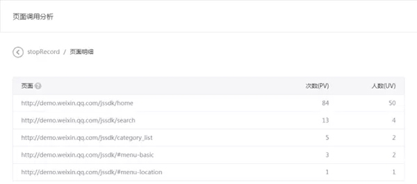 3. 各個 JSSDK 調(diào)用的頁面明細。