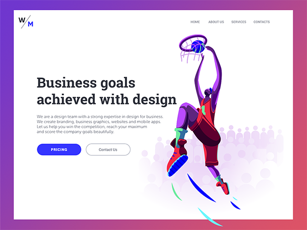 例如:下面的插畫是基于關(guān)鍵詞“目標”來進行設(shè)計的?;@球運動員灌籃的這一動作和“抵達目標”在寓意上是完美契合的,因此,結(jié)合豐富的色彩,通過控制插畫的角度和角色形體,營造出力量感和動感。