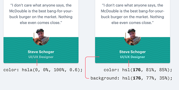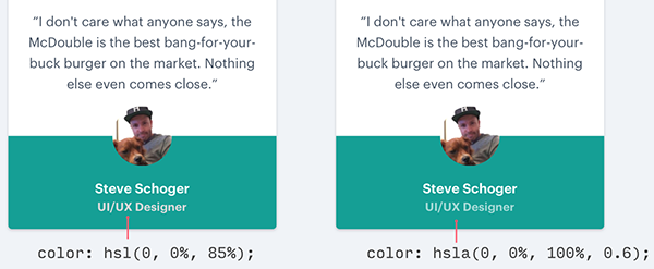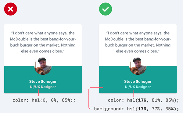 若背景顏色是白色,這時將黑色的文本改成灰色,不失為一個不錯的淡化其視覺效果的做法,但是若背景是色彩的,那這就是另外一回事了。實際上,白色背景下文本有黑變灰達到了降低對比度的效果,但在色彩背景下,想要降低對比度正確的做法就是讓文本逐步的接近背景色,而并非是改為灰色。一般來說,想要降低和背景色之間的對比,通常做法有兩種: