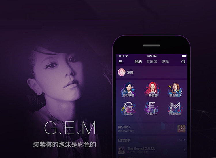 鄧紫棋:肺活量極大,唱歌超好聽,眾男生心中的女神鄧紫棋,名字里有“紫”字的美女十分適合夢幻的紫色調(diào)。設(shè)計(jì)靈感來自GEM的成名歌曲《泡沫》,在彩色泡沫包圍下,幻化為美麗的人魚公主。圖標(biāo)設(shè)計(jì)主要選用了GEM經(jīng)典的造型,當(dāng)然還有粉絲們熟悉的“金魚”。