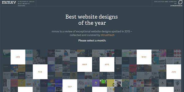當(dāng)進(jìn)入網(wǎng)站后界面以后,你會發(fā)現(xiàn)MMXV網(wǎng)站中并不存在多余的介紹和花里胡俏的裝飾,有一行關(guān)于網(wǎng)站主人zitrusfrisch 的介紹,他是一個國外服務(wù)類產(chǎn)品中非常有威望的設(shè)計師,榜單的收集和網(wǎng)站的視覺設(shè)計都是由他一人完成的,非常良心。