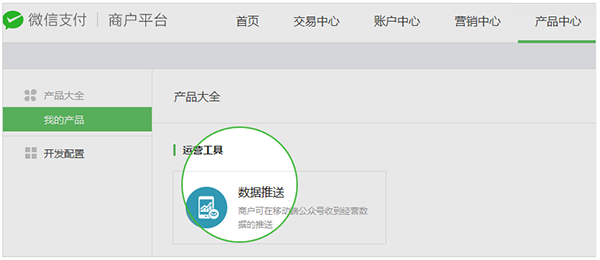 1. 登錄商戶平臺(tái),在【產(chǎn)品中心-我的產(chǎn)品-數(shù)據(jù)推送】點(diǎn)擊“申請(qǐng)開(kāi)通”