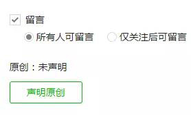 2、開通原創(chuàng)聲明、留言等功能,是每一篇文章都需要使用嗎?