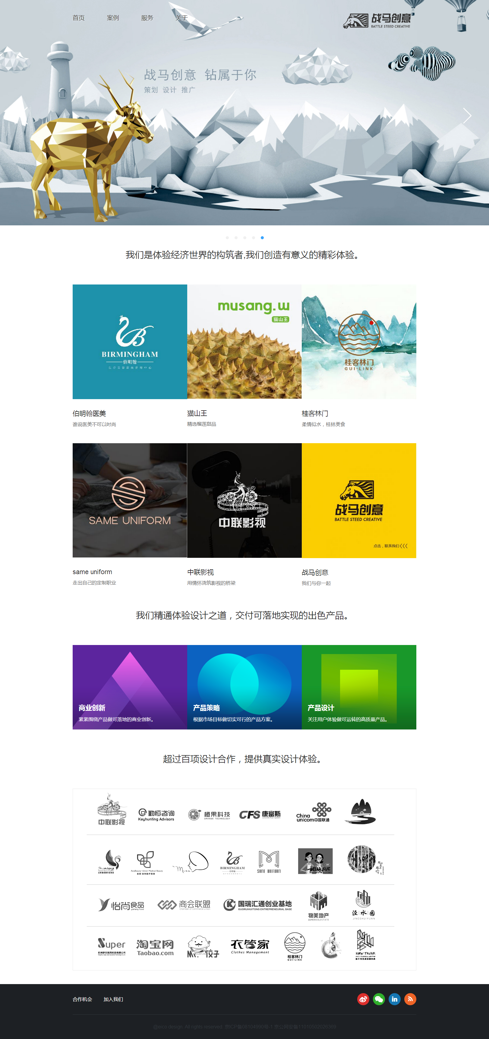 戰(zhàn)馬創(chuàng)意成立于2013年,成立時(shí)間雖短,但三年間我們?yōu)橹袊?guó)各大城市的100余位客戶(hù)打造其專(zhuān)屬品牌,有效提升了品牌價(jià)值與市場(chǎng)影響。我們跟隨主流,但絕不盲從跟風(fēng)。把時(shí)下最具代表性的創(chuàng)意設(shè)計(jì)呈現(xiàn)給客戶(hù)。我們用設(shè)計(jì)創(chuàng)造創(chuàng)意;用創(chuàng)意推動(dòng)品牌;用品牌影響市場(chǎng)。戰(zhàn)馬創(chuàng)意不斷求新,與客戶(hù)攜手發(fā)展。