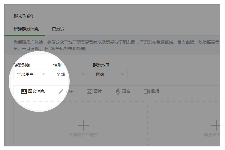 一、群發(fā)消息:提升圖文消息曝光量+已群發(fā)消息新增發(fā)送對象詳情