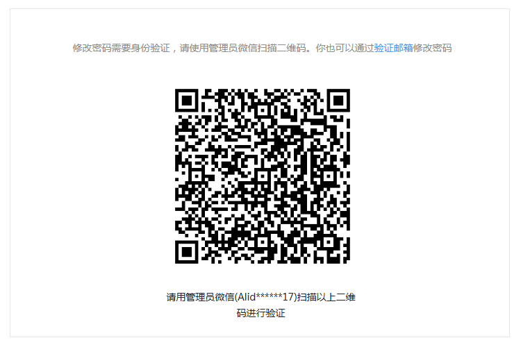 運營者在安全中心修改帳號密碼,除驗證郵箱外,新增管理員掃碼方式,管理員掃碼后,輸入原密碼驗證身份后即可設置新密碼。