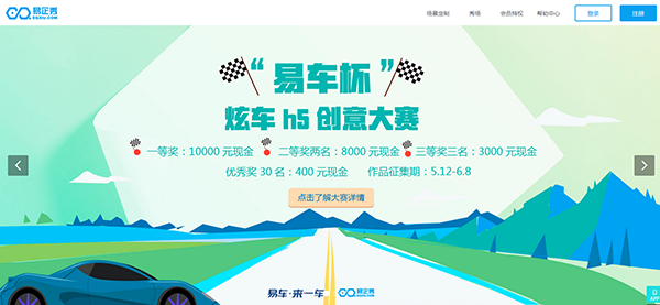 易企秀就是一款H5頁面制作工具。它有多種動態(tài)模板,能實現(xiàn)文本和圖片的滑動、隱現(xiàn)、放大縮小等動態(tài)效,并且操作簡單,用戶無需掌握復雜的編程技術(shù),就能簡單、輕松制作基于HTML5的精美手機幻燈片頁面。同時,易企秀與主流社會化媒體打通,讓用戶通過自身的社會化媒體賬號就能進行傳播,展示業(yè)務(wù),收集潛在客戶,使用的地方包括:企業(yè)宣傳,產(chǎn)品介紹,活動促銷,預約報名等。