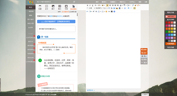135編輯器是一個微信文章美化工具,操作簡單方便,旨在提供豐富的樣式,精美的模板。編輯文章時,就像拼積木一樣,挑選樣式,調(diào)整文字,搭配顏色,最后形成排版優(yōu)質(zhì)的文章,讓讀者更賞心悅目。