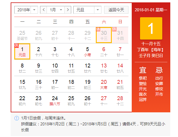 2、2018年1月2日(星期二)正常上班。