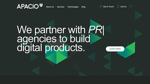 好的設(shè)計(jì)就應(yīng)該緊隨時(shí)代的發(fā)展,這樣才能具有富有時(shí)代感的體驗(yàn),背景紋理設(shè)計(jì)同樣如此。當(dāng)下,最流行的設(shè)計(jì)元素之一就是幾何圖形元素,將幾何圖形融入到背景當(dāng)中,毫無疑問非常具有吸引力,如:Apacio這個(gè)網(wǎng)站,它采用深色的背景之上混合色彩鮮艷的幾何圖案,創(chuàng)建出富有深度且抓人眼球的視覺,而文字方面采用了簡約的非襯線體,使得它們可以從黑色和綠色的背景中脫穎而出。