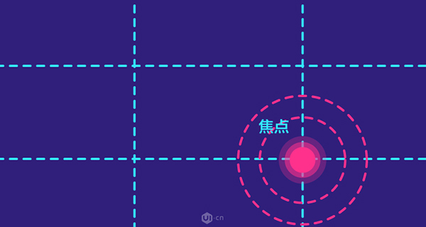 此種構(gòu)圖方式也稱之井字構(gòu)圖或三分法構(gòu)圖,就是將圖片水平或豎直方向分成相等的3部分,將主體物放在幾條線的焦點(diǎn)上,只要遵照這樣的構(gòu)圖原則,最終畫面都給給人很舒服的感覺。在場(chǎng)景中采用九宮格構(gòu)圖會(huì)讓畫面更加具有靈性,在UI界面中采用九宮格的構(gòu)圖方式,可以增強(qiáng)畫面的形式感以及靈動(dòng)性。