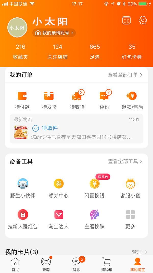 通過工具內(nèi)容顯性化設(shè)計,可實現(xiàn)用戶所見即所得,幫助用戶快速明確的理解到工具所提供的核心功能和服務(wù),有效的減少用戶與工具所提供的核心服務(wù)之間的交互步驟和流程,讓用戶在當前工具的內(nèi)容區(qū)完成與工具的核心交互。如:淘寶「我的淘寶」頁面就采用了大量內(nèi)容顯性化的設(shè)計,用戶在當前頁面就能快速掌握到核心的信息。