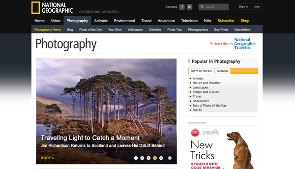 如果一張漂亮的圖片對你的項(xiàng)目有幫助,別僅限于從中汲取靈感,直接使用它。大膽設(shè)計,聚焦于這張漂亮圖片。另一方面,如果你沒有合適的圖片,搜羅全世界的照片來尋找靈感。當(dāng)你感到艱難、設(shè)計卡住時,National Geographic、Jill Greenberg和Levon Biss,就是尋求幫助的絕佳地方(而且這些網(wǎng)站圍繞圖片的設(shè)計都做得不錯)一張焦點(diǎn)圖一張圖片。