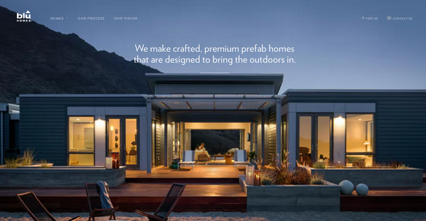 Blu Homes 的首頁設(shè)計的幾乎可以說是非常完美的,在文案設(shè)計和視覺設(shè)計之間找到了平衡點(diǎn),兼顧了視覺和閱讀體驗(yàn)。另外,自然的動效和精心選取的圖片為整個網(wǎng)站營造出溫馨的氛圍,給人一種非常舒適的感覺。