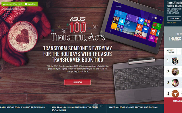 100 Thoughtful Acts是一個給人一種無比注重美學(xué)印象的網(wǎng)站。用心觀察不難發(fā)現(xiàn)細(xì)小的CTA是一個由文本和色彩組成,而采用按鈕采用紅色的基調(diào)顯然是最明確的選擇,它令按鈕融合到環(huán)境中,而不是從中脫穎而出,給人很舒服的感覺。