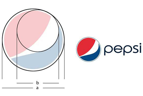 黃金比例圓形。黃金比例不止是能夠創(chuàng)建矩形,同樣的也能用來創(chuàng)建比例協(xié)調(diào)的圓形。使用黃金比例不僅可以產(chǎn)生和諧的比例,而且能夠讓圖形保持較高的一致性。如:百事的LOGO使用兩個(gè)遵循黃金比例的圓圈來構(gòu)建的,較小圓形并不是顯而易見的那種,而是隱藏在內(nèi)部的曲線中。