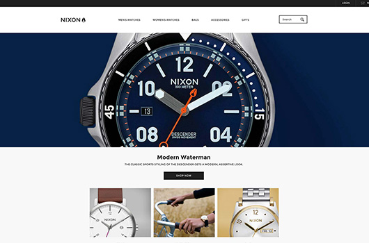 動畫是吸引顧客、與他們進(jìn)行良好溝通較好的方式,目前很多電商網(wǎng)站開始將它注入設(shè)計(jì)中,讓在線購物體驗(yàn)效果更卓越。如果使用位置和時(shí)機(jī)恰當(dāng),動畫會讓你的顧客感到你在真正關(guān)心他們的體驗(yàn)。在2016年,你會看到更多電商網(wǎng)站有創(chuàng)意地運(yùn)用動畫--例如按鈕旋轉(zhuǎn)、圖標(biāo)轉(zhuǎn)動和加載進(jìn)度條--為顧客留下深刻印象。想找點(diǎn)靈感嗎?不妨來看看Nixon。