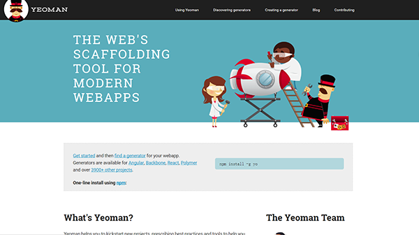 Yeoman剛剛上市的時間并不長,它是一個新興的工具,結(jié)合了 Yo、Grunt 和 Bower 等工具,組成了一個完整的工具集合,提供各種Web應(yīng)用開發(fā)中所需的實用功能。Yeoman最大優(yōu)勢在于它整合了各種流行的實用工具,提供了一站式的解決方案,使得開發(fā)人員可以專注于應(yīng)用本身的實現(xiàn),而不用在搭建應(yīng)用的基礎(chǔ)結(jié)構(gòu)、進(jìn)行任務(wù)構(gòu)建和其他輔助任務(wù)上花費(fèi)過多的時間和精力。