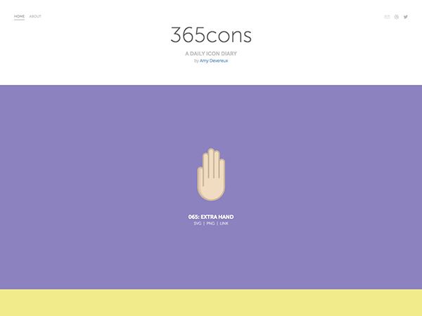 365cons不知道作為設(shè)計(jì)師的你是否了解對(duì)其有過(guò)了解,它是Amy Devereux所制作的每日更新的“圖標(biāo)日記”,這些圖標(biāo)被設(shè)計(jì)成不同的樣式,對(duì)于設(shè)計(jì)師尋找靈感來(lái)說(shuō)是相當(dāng)不錯(cuò)的選擇,如果現(xiàn)在的你也在迷茫,不知所措的話,不妨多瀏覽些這樣的網(wǎng)站,用其作為靈感來(lái)源還是相當(dāng)不錯(cuò)的哦!