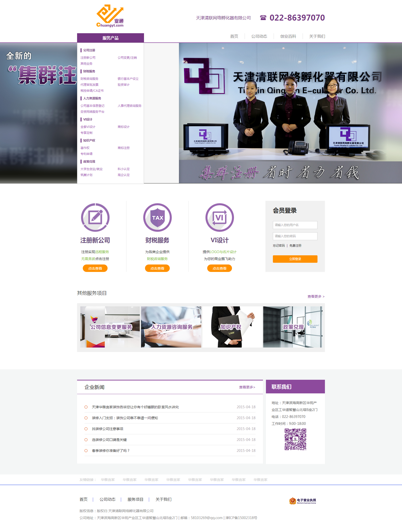 天津清聯(lián)網(wǎng)絡(luò)孵化器有限公司是一家基于互聯(lián)網(wǎng)為小微企業(yè)提供集群注冊(cè)、代理記賬、網(wǎng)站和logo設(shè)計(jì)以及代理商標(biāo)專(zhuān)利申請(qǐng)、為企業(yè)融資和孵化的互聯(lián)網(wǎng)服務(wù)型企業(yè)。公司位于天津華苑智慧山北塔11層。
